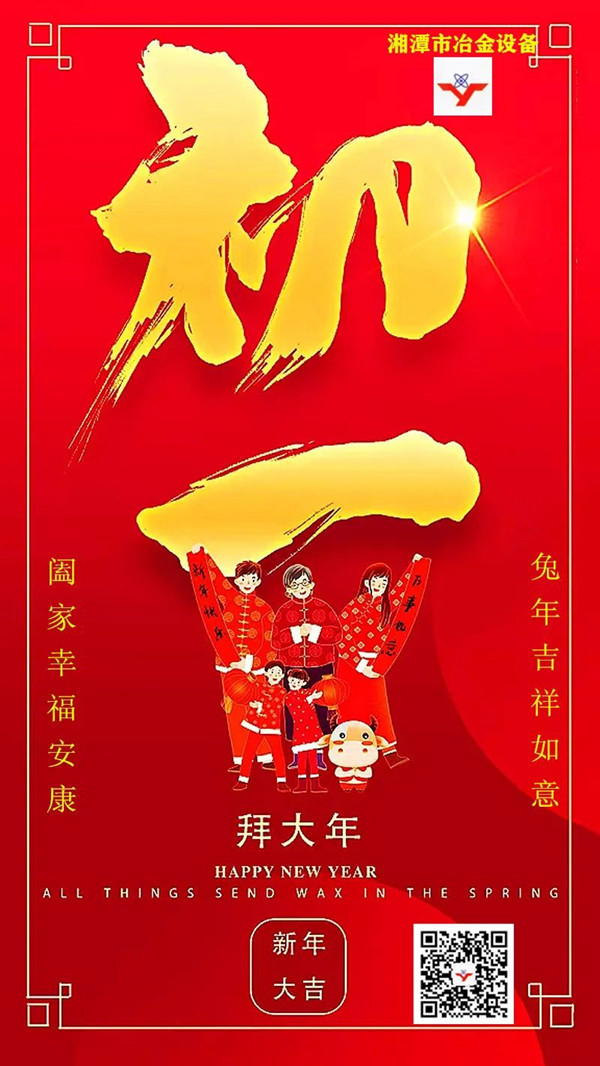 金虎呈歡辭舊歲,福兔躍起迎新春。 湘潭市冶金設(shè)備發(fā)展、成長(zhǎng)的每一步,都凝聚了各位客戶、合作伙伴和各界朋友的關(guān)懷、信賴與支持,以及全體湘冶家人的辛勤耕耘與打拼。充滿機(jī)遇與挑戰(zhàn)的2023,我們將信心滿懷,堅(jiān)守初心,沿著既定的宏偉目標(biāo),再譜新篇章。 值此兔年春節(jié)到來(lái)之際,國(guó)內(nèi)冶金礦山設(shè)備非標(biāo)定制專家——湘潭市冶金設(shè)備制造有限公司恭祝大家:春節(jié)團(tuán)圓美滿!闔家幸福安康!在大展鴻兔、兔飛猛進(jìn)的2023年里,好運(yùn)常在!笑口常開!開心每一秒,快 樂每一天,幸福連連,健康久久!