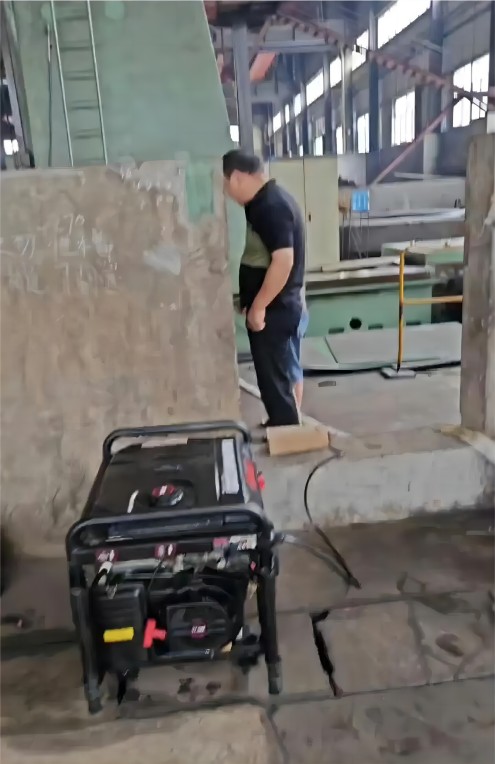 9點(diǎn)左右,車間突發(fā)停電,設(shè)備面臨被水浸的危險(xiǎn)。劉美林總經(jīng)理果斷決策,采購(gòu)發(fā)電機(jī)和配件,搶險(xiǎn)團(tuán)隊(duì)安裝調(diào)試后及時(shí)抽出立車地下水。因一臺(tái)不夠,喻斌也冒雨采購(gòu)了一臺(tái)大功率發(fā)電機(jī),為搶險(xiǎn)工作提供了有力支持。